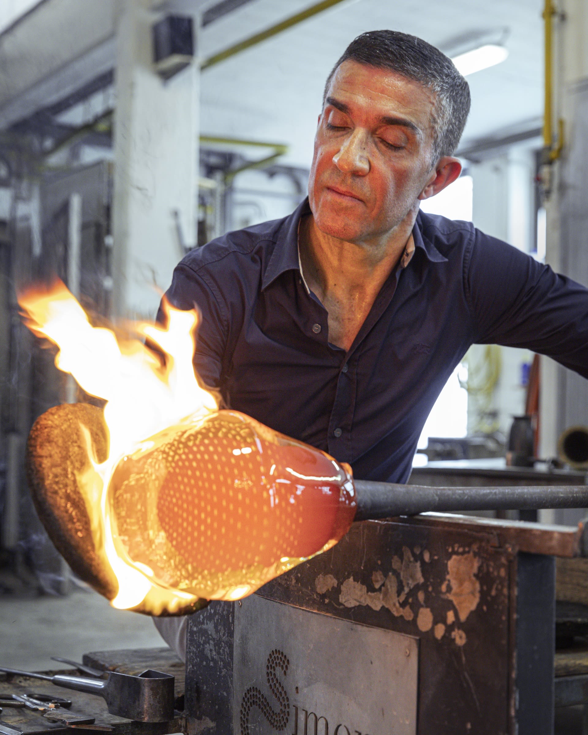 But Simone’s true masterpiece is the atmosphere he has managed to create in his furnace. His collaborators are a second family, united by a sense of challenge and love for the craft. He himself is the first to set an example, with his perfectionist nature. “I arrive at the furnace at 5 in the morning. I like to check that everything is in order, ready to start the day in the best way,” he says.