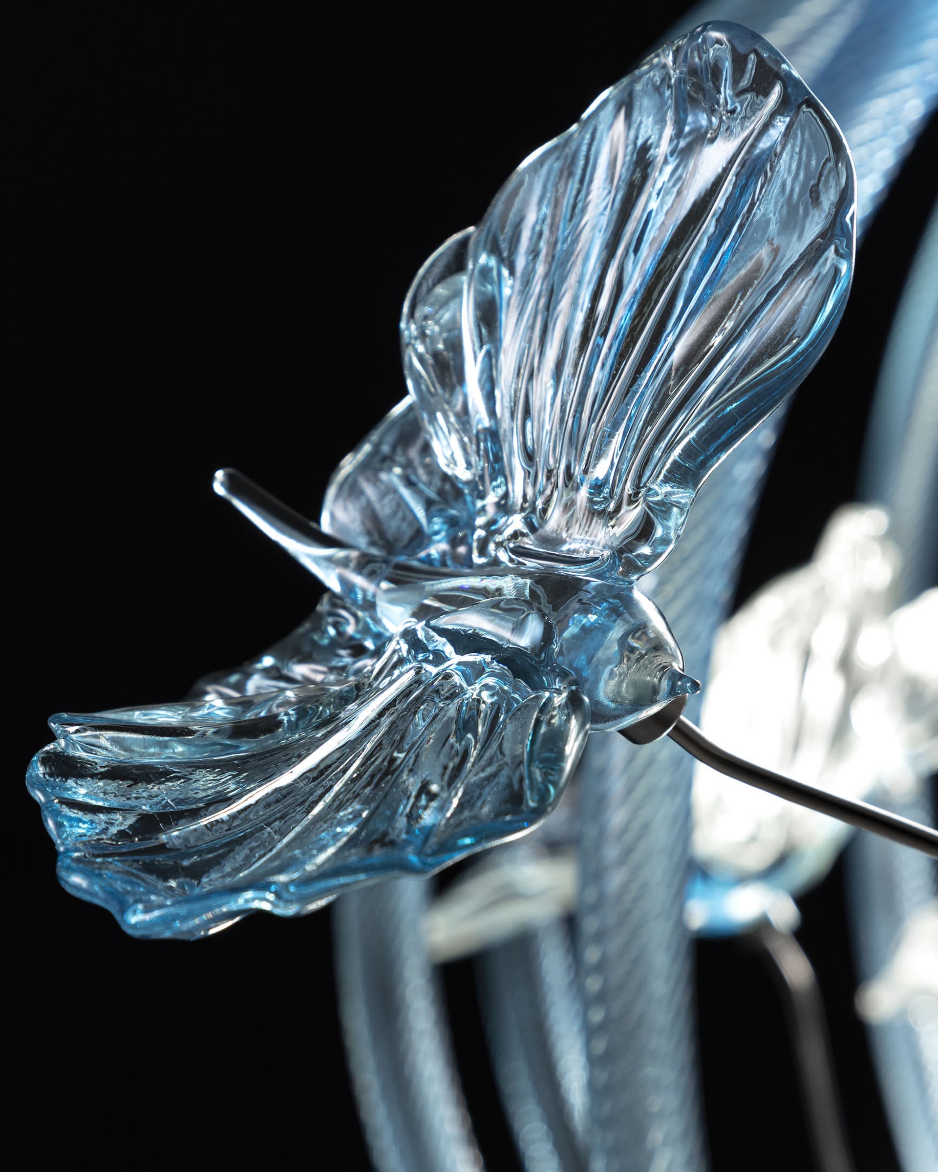 “Flowers in Wonderland” is much more than a simple lamp: it is a luminous flower inside a vase, a seemingly simple idea that contains a technical and creative challenge not challenge. The Multiforme team worked to transform the initial concept, made in borosilicate, into a technically advanced and aesthetically surprising product.