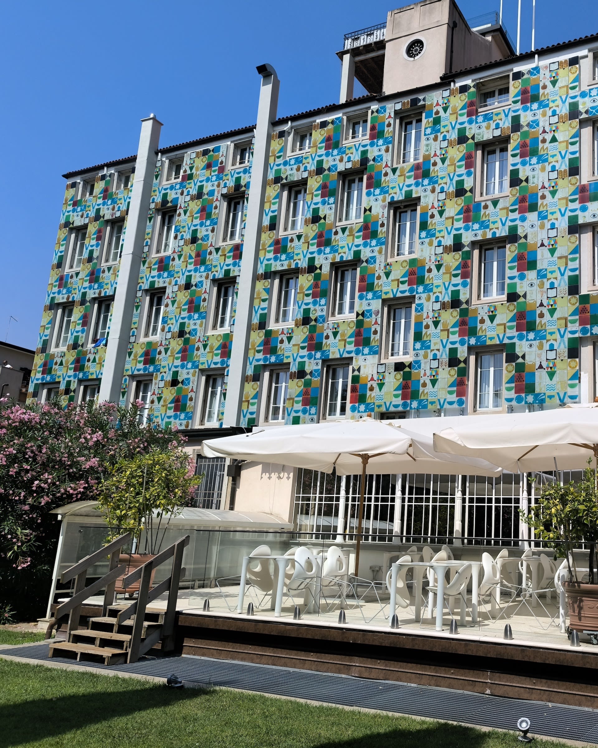 The company’s expertise also finds expression in high-profile contract projects. From the evocative stained-glass windows of the Central Synagogue in Milan created with the artist Roger Selden, to the blown glass components for the “luminous sky” of Fiumicino Airport designed by Giorgio Cugliari, to the installations for the Chinese headquarters of the e-commerce giant Alibaba, Yalos leaves its indelible mark in architectural contexts of world prestige. Another significant example is the Hotel Ausonia Hungaria on the Lido di Venezia, where Yalos oversaw the cladding of a facade, once again demonstrating its ability to integrate glass into unique and visually striking design projects.