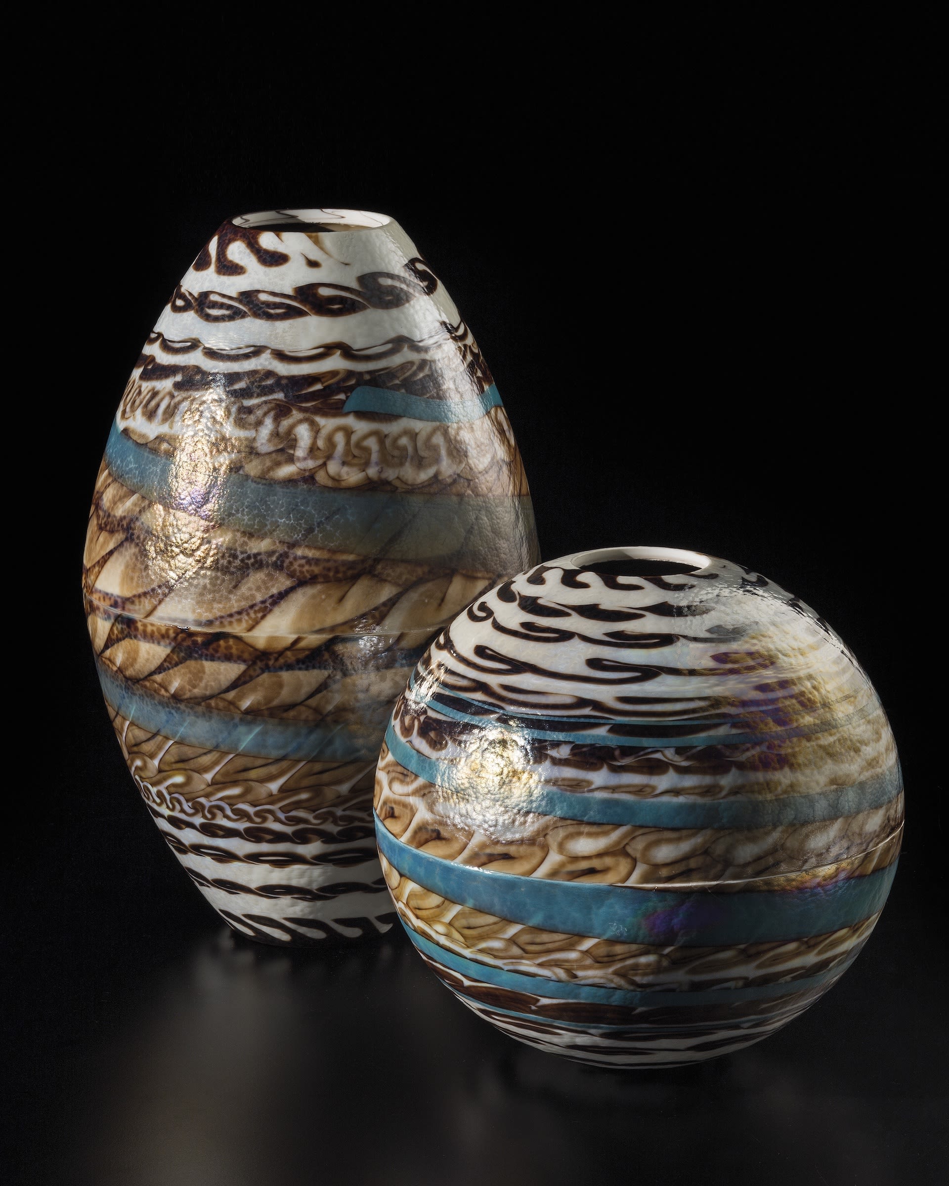 Tradition is combined with innovation thanks to constant research and experimentation, particularly in the field of colors and decorations. Guido Ferro, Diego’s father and one of the leading experts in glass pastes, has dedicated his life to studying the infinite possibilities offered by mineral mixtures. This passion for experimentation is reflected in the company’s creations, where glass becomes a canvas for exploring new colors and decorative motifs. For example, the fascinating mother-of-pearl effects produced on the surface of some pieces add a touch of uniqueness and refinement.